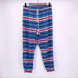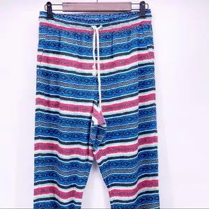 Super cool boho joggers. Perfect for spring/summer. Elastic cuffed ankles, and elastic and drawstring waistband.