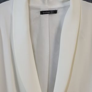 Add a touch of sophistication to your wardrobe with this Boohoo Women's Tuxedo Blazer. It features a solid pattern, long sleeves, and a shawl lapel style. This jacket is perfect for various occasions such as travel, weddings, parties, christenings, and even business meetings. The blazer is made of a polyester blend fabric, which gives it a comfortable and blended texture. The jacket comes in a size 4, which is a regular size for women. It is fully lined with polyester, has faux pockets, and is ideal for the spring and summer seasons.