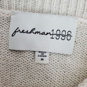 Adorable, soft cotton and acrylic Freshman 1996 Crocheted Embroidered Scalloped Edge Cropped Sweater Tank Top Size Medium. This top is a beautiful natural cream color with blue and pink flowers embroidered on it. Wear with shorts, denim or a long skirt.