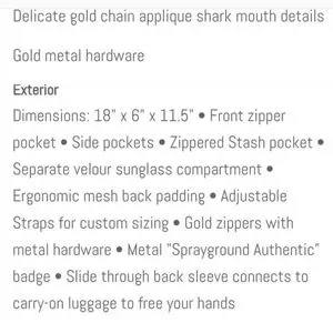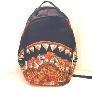 Top of the line Sprayground Diamond Shark Gold Cash Money. This one is hard to find. Very sturdy. Many padded, cushioned compartments. Very wide comfort. adjustable straps. Like new. Used once. The last pic shows slightly nephews' initials. We used this once for our day trip. Like new condition. Clean