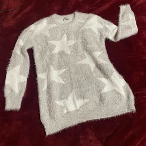 This Show Me Your Mumu silver starred sweater dress is in great shape. It is an x small relaxed fit.