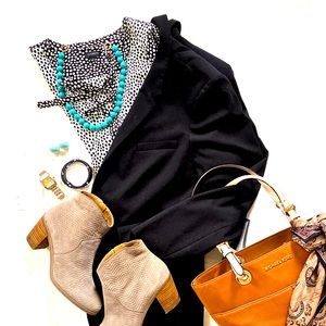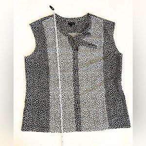 Talbots size L black & white Polka-dot blouse. 100% polyester. Measurements included in photos.