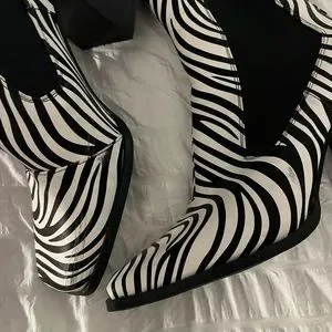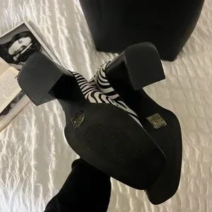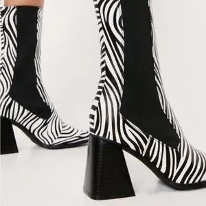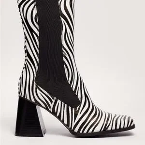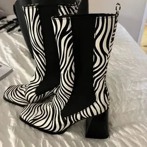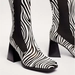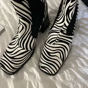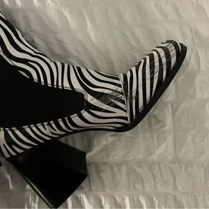 Zebra Faux Leather Heeled Chelsea Boots. Only wore a few times with minor scuffing on inner toe curves (as shown).