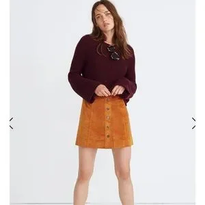 Madewell Velveteen snap skirt, brown / rust orange in color, great condition