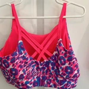 Sports bra has strappy back