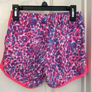 Shorts have an elastic waist and inside drawstring feature