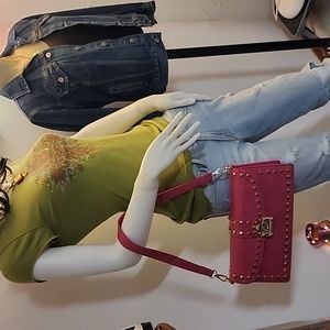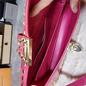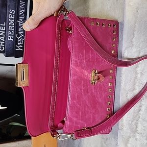 Boutique brand handbag. It looks like a Valentino rock stud. excellent condition. shoulder strap, crossbody strap, or wristlet. gold tone hardware.