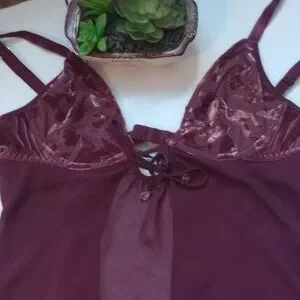 Victoria Secret night gown. Has normal wear over all in good used condition. Please check photos for more details. color: burgundy