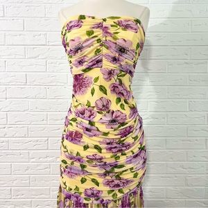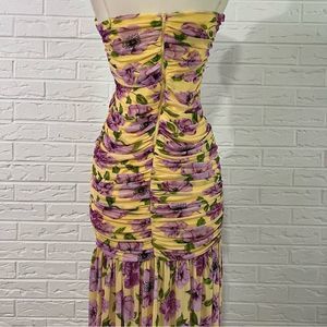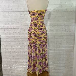 ASOS Design Mesh Ruched Bandeau Strapless Maxi Floral Dress Size 6