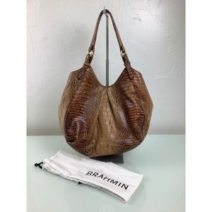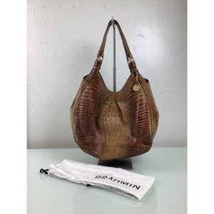 Brahmin Toasted Almond Anne Large Croc Tote Handmade purse bag