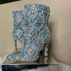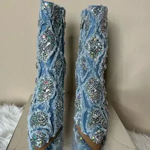 #Festival #Denim Boot #Distressed Denim #Rhinestone Embellished