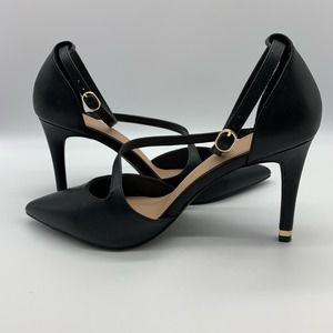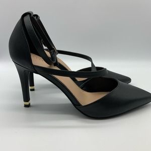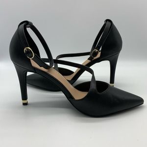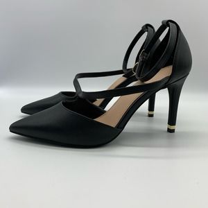 Kelly & Katie Pointed Toe Black Strappy Black Pumps With Gold Trim Heel Sz 10M