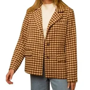 057. NWT Women's Brown Cream Check Blazer