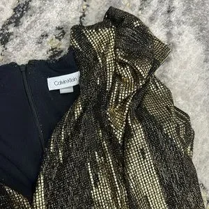 Brand new, black and gold belted Calvin Klein dress