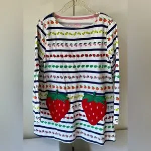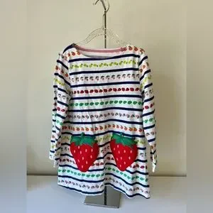 MINI BODEN Girl’s Strawberry Pockets Long SleeveTunic Fruit Dress, 5/6Y, VGUC
