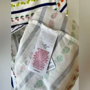This adorable cotton dress has a multicolor stripe pattern featuring yummy fruits and the cutest strawberry appliqué pockets! The long sleeves make it perfect for chilly spring nights and useful in the summer to protect the skin from the sun. It’s light and airy, so it’s perfect for Spring and Summer seasons.