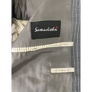 This listing is for a men's Samuelsohn Super 110s stripe 2-button blazer. Size 44S (see below for exact measurements) and made of 100% wool with an acetate lining. Very lightly used and in great condition! If you have any questions please do not hesitate to ask and thanks for looking :)