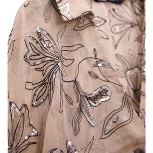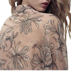 Zara NWT Sheer and sequins pink Blouse Floral design. Size XS