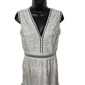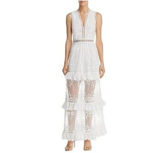 AQUA Embroidered Flounce Lace Sheer Maxi
