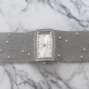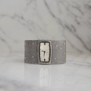 Anne Klein Silver Diamond Cuff Watch Bracelet.
