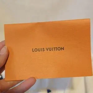 one white Louis Vuitton card holder with blank envelope and white document for writing a note/ gift tag
