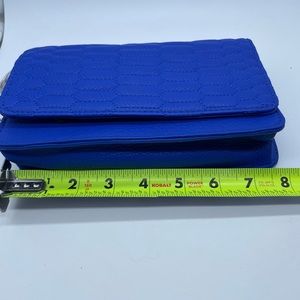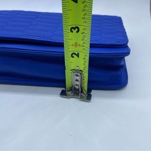 Aimee Kestenberg Alexis II Crossbody Chain Bag. Bright blue bag with silver chain, silver metal tassel, and organizer inside with card slots and zipper cash pocket. Excellent condition