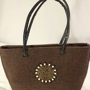 WOVEN BEADED BROWN SATCHEL PURSE Os