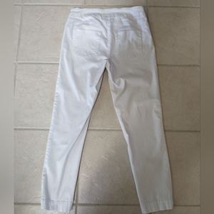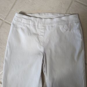 Pull-on pants have faux front pockets and a slimming front panel as shown. Waist measures approx 14.5" laying flat and has a 26.5" inseam. Good condition. Smoke free home