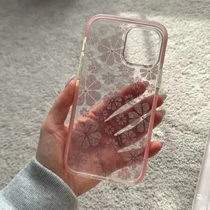 Clear case with sparkly pink flowers
