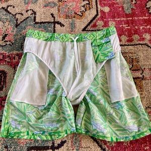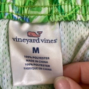 Men’s Vineyard Vines swim trunks green/blue fish pattern Fully lined medium