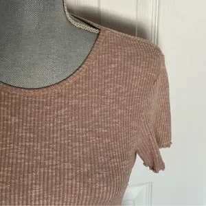 AMERICAN EAGLE LETTUCE TRIM RIBBED DUSTY PINK TOP SIZE M