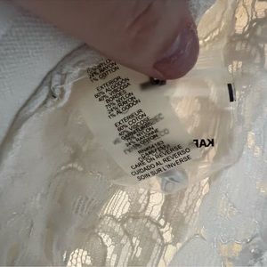 Super cute Karl Lagerfeld sweater cardigan, Pearl button front, lace back. White. Excellent like new condition! I tried to wear it a couple of times but I’m too busty for it.