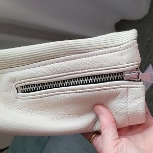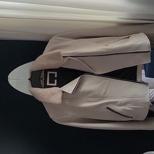 NWT! Buttery soft leather and a removable sheepskin collar elevate the timeless moto jacket. The perfect piece to top off every outfit, it features ribbed detailing and asymmetrical zip pockets.