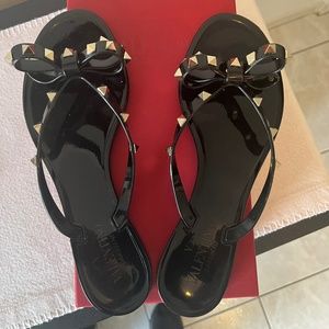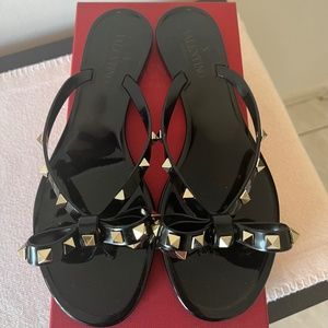 SOLD - Valentino Garavani Women's Rubber "Rockstud" Thong Flip Flop, Size 40