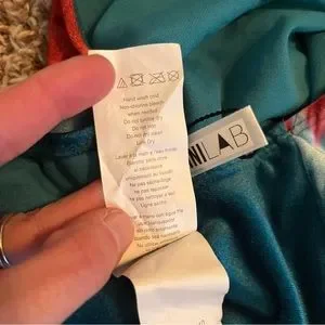 A velvety one-piece in colors reminiscent of a favorite popsicle treat is sure to keep you looking sweet sitting poolside! This new with tags suit by The Bikini Lab features a plunging neck line, low back, tie neck, and high cut design.