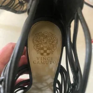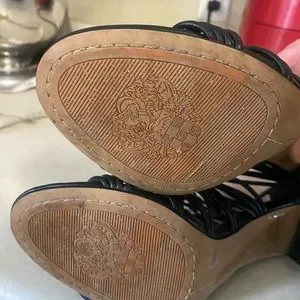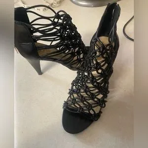 Crochet look, cage style sandals. Knotted leather cording with pyramid heel. Only worn once, box not included