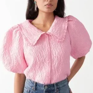 & Other Stories Textured Ruffle Collar Puff Sleeve Top