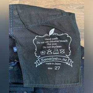 Pure Blue Japan/ Syoaiya Co. XX-007 Double Indigo Slim Straight Raw size 27. Unsanforized, so they’ll be about 1.5 size smaller. Never washed but rarely worn for 3 months due to weight gain. Almost zero fading
