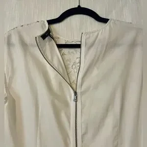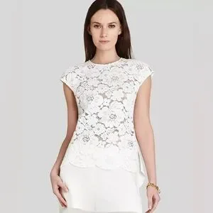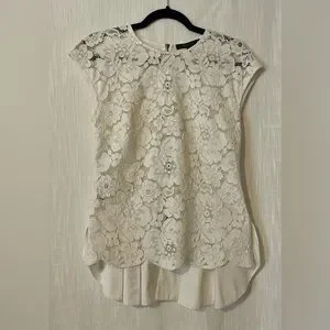Description: Beautiful lace top with crewneck, cap sleeves, peplum helm, and exposed back zipper. There is no lining covering the lace.