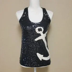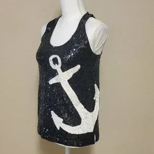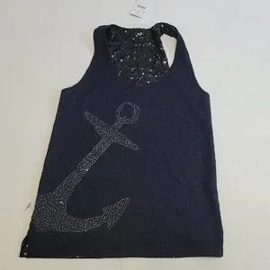 J. Crew Sequin Anchor Nautical Racerback Tank Top