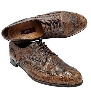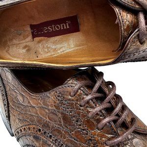 Vintage Full Alligator Italy A.Testoni Men's 8.5 Bronze Brown Exotic Dress Shoes