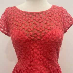 PINK EMBROIDERED FLORAL MINI DRESS WITH PLEATED SKIRT, FULLY LINED, NO TAGS, EXCELLENT CONDITION, DRESS BY ARTELIER