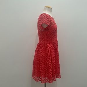 PINK EMBROIDERED FLORAL MINI DRESS WITH PLEATED SKIRT, SIZE 6