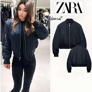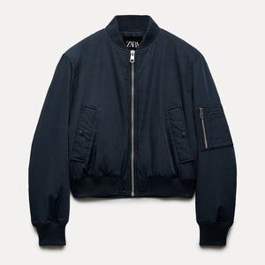BLOGGER'S FAVE! Zara Short Bomber Jacket Navy Blue NWT