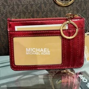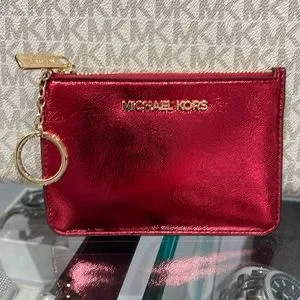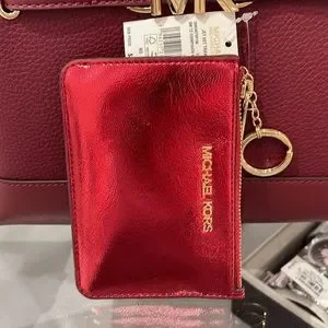 MICHAEL KORS Jet Set Travel Small Top Zip Coin Pouch With ID Keychain Crimsn NWT