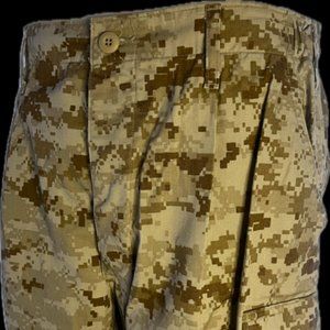 Brand New With Tags - Marine Corps Combat Utility Uniform (MCCUU) or simply known as MARPAT. Features include 4 front fly buttons, elasticized side waist with belt loops, front side pockets, 2 back pockets w/button flaps, 2 side cargo pockets, with reinforced knees and seat. Size Large Regular