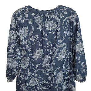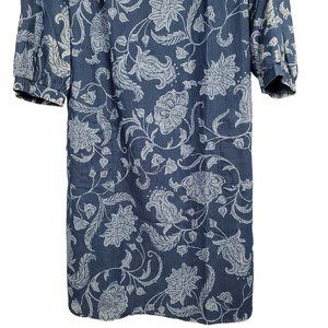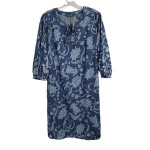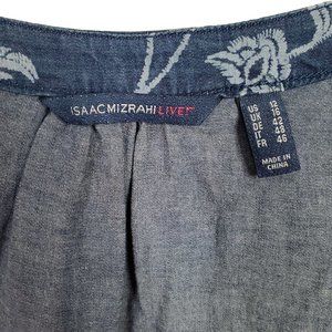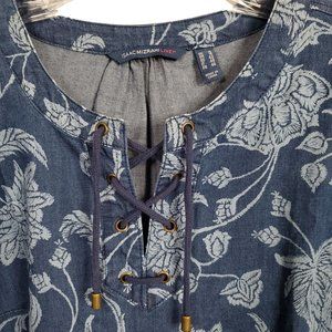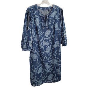 Isaac Mizrahi Live Sz 12 Dress Denim Chambray Floral Print Split Sleeves Lace Up