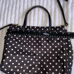 crossbody bag and arm with slight wear on the four corners, both handles are worn
