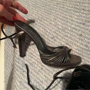 YSL Yves Saint Laurent VINTAGE strappy open toe metallic Heels sz7.5