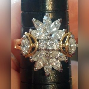 Size8 goldtone 14kge edco ring super sparkly rhinestones